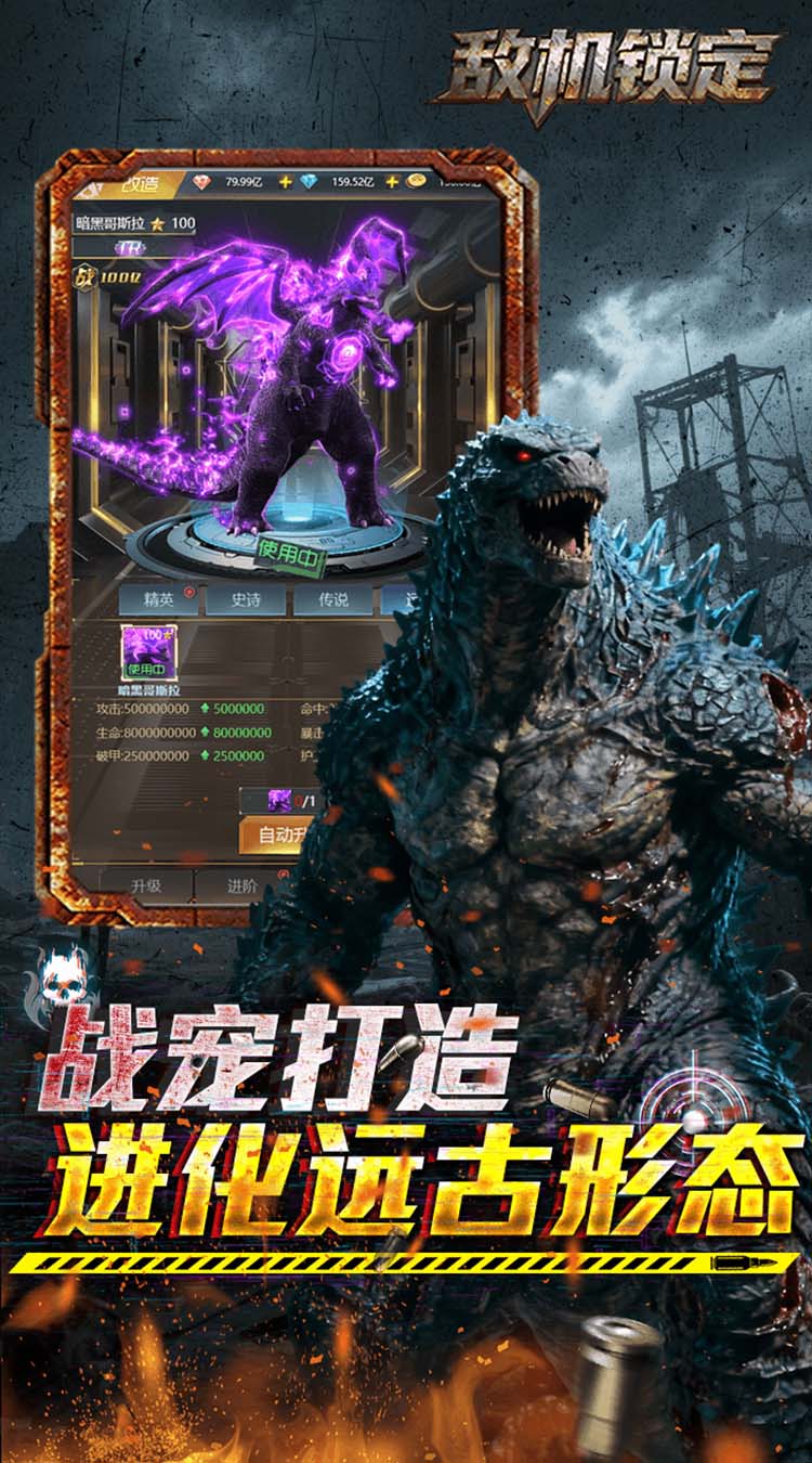 《敌机锁定》是一款末日废土战争题材ARPG手游,在遥远的2049年,全球战争引爆生化危机降临,使得全球未知生物全面复活。有成群结队的丧尸群,变异远古凶兽恐龙,未知星系的变种异形入侵,使得全人类陷入前所未有的危机。在这片废土之上,你将拿起AK、激光枪等多样武器,改造恐龙协助战斗,直面重重威胁,于战争与异兽交战的旅途中突围,带领幸存者重建家园,点燃人类最后的希望之火,恢复世界秩序!