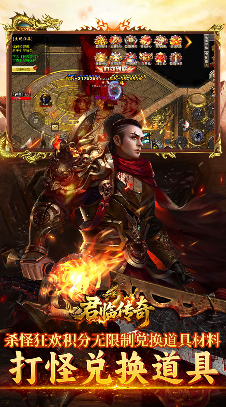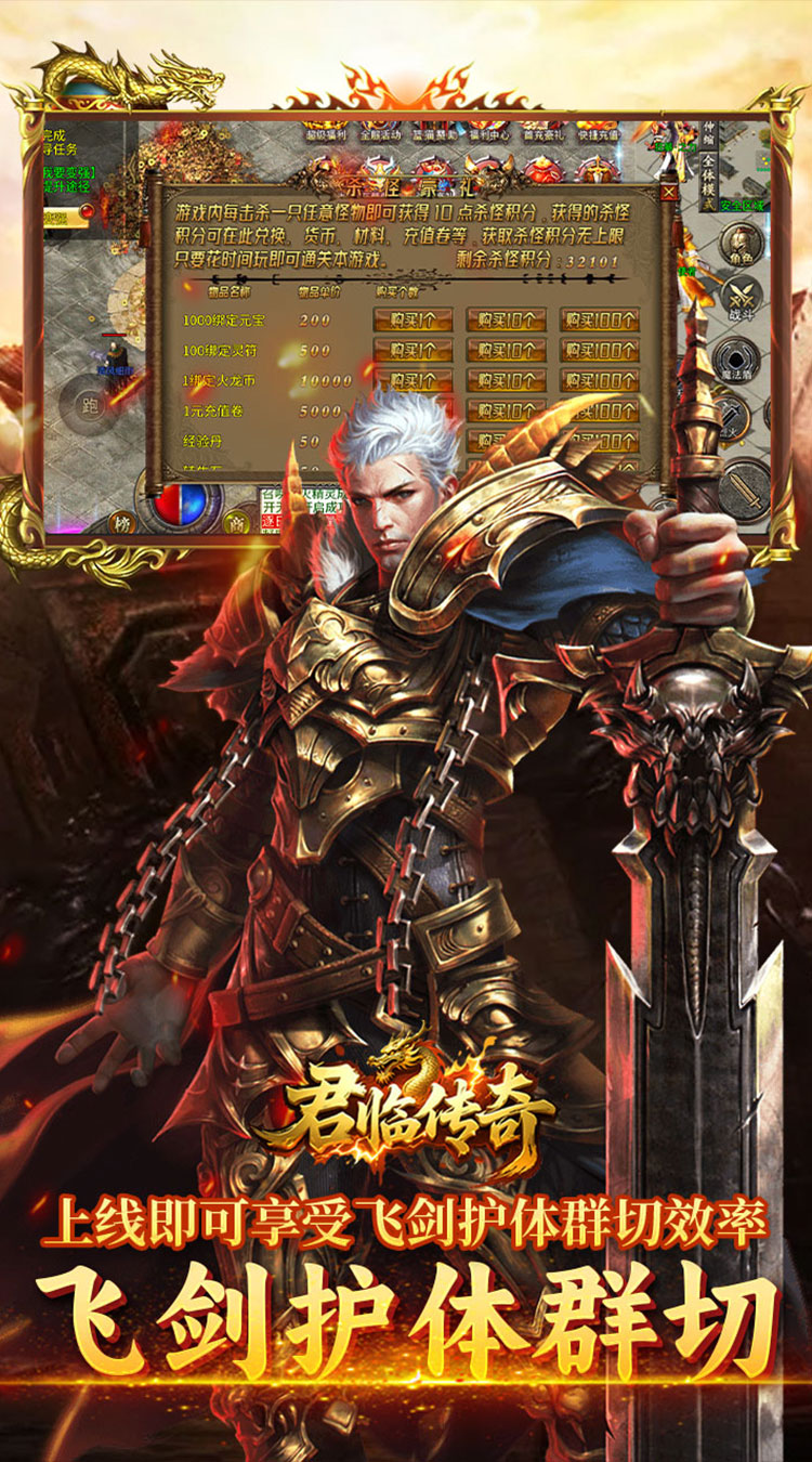 ★上线福利:新人助力飞剑护体群切,5倍充值卡 ★首充豪礼:杀怪即可白嫖首充礼包,助力起飞 ★首爆奖励:抢占先机,抢占资源,白嫖真充卷和火龙币