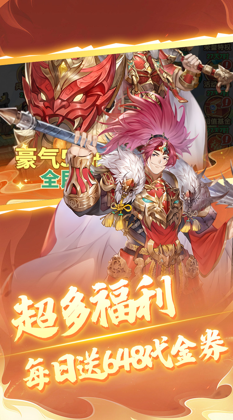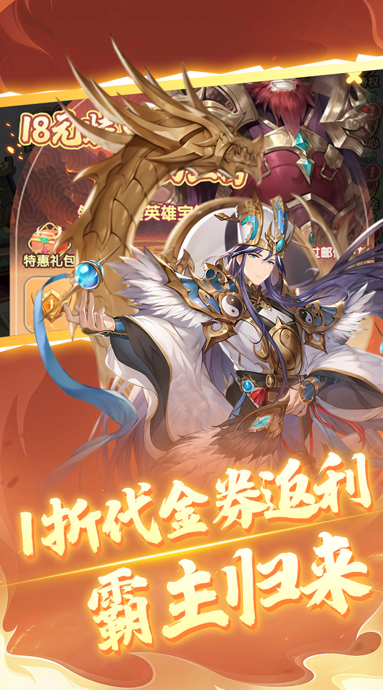 1、全新三国放置卡牌1折版本,每日赠送648代金券