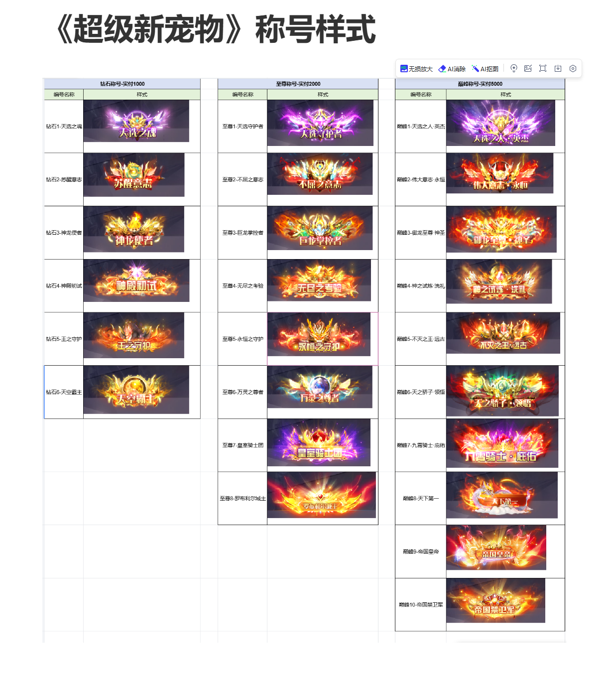 特别说明:若玩家没有提供称号外观模板编码,则默认使用编码1模板。